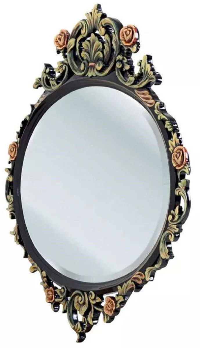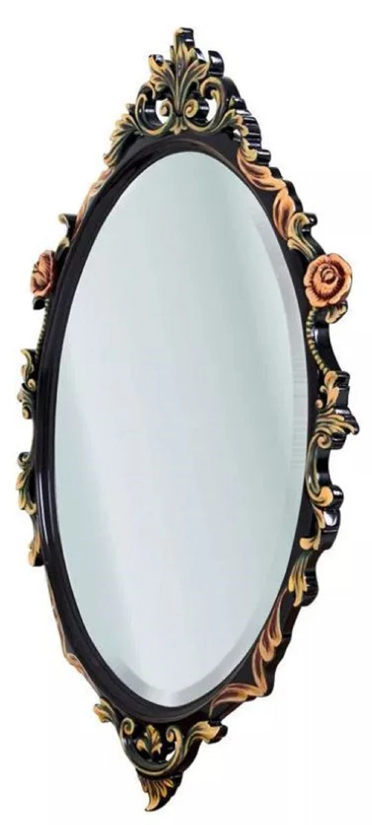 Casa Padrino espejo barroco de lujo negro / multicolor - Espejo de pared ovalado de madera maciza de estilo barroco - Muebles de lujo de estilo barroco - Muebles barrocos - Noble y magn¨ªfico