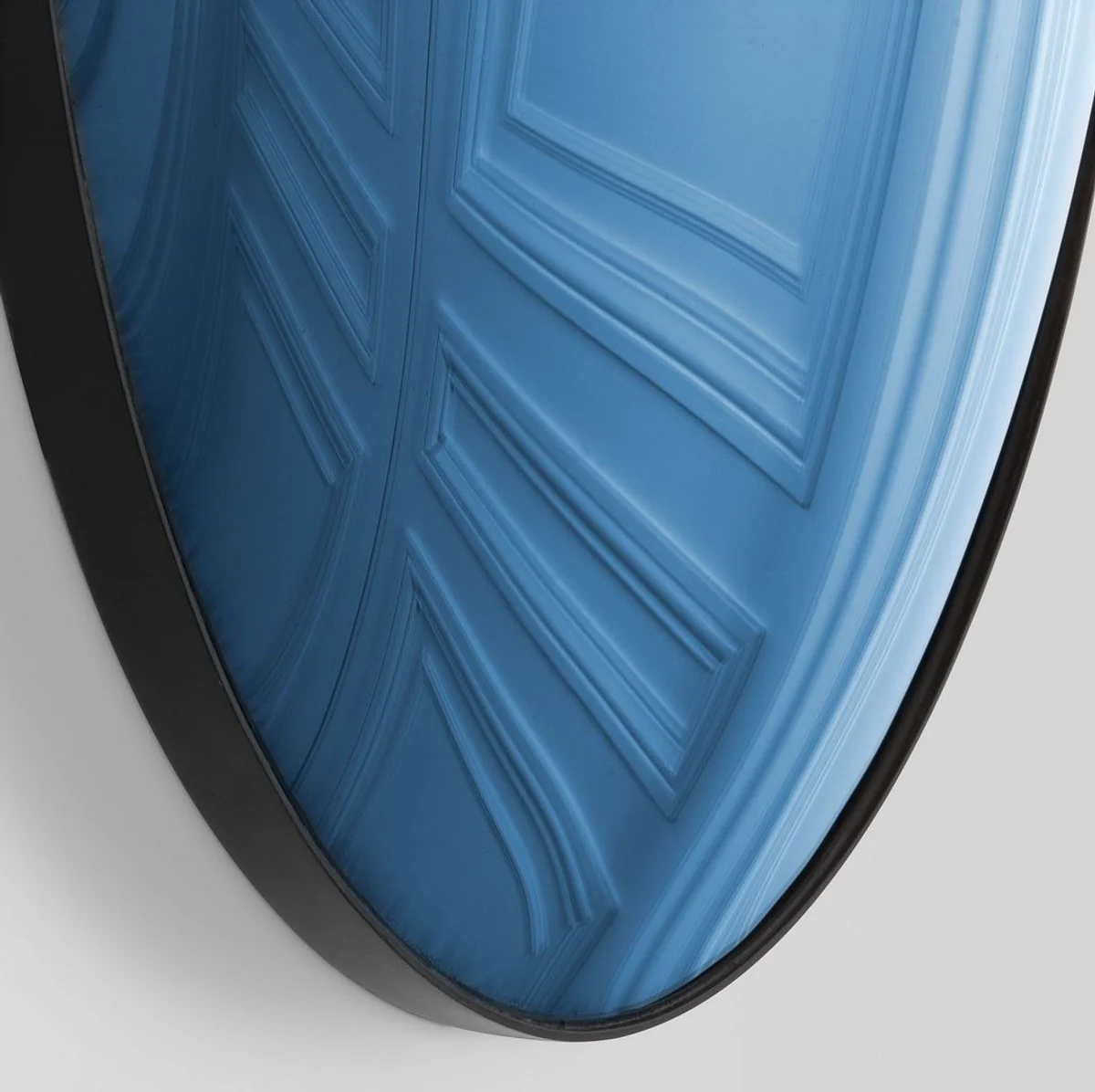 Casa Padrino espejo de lujo azul / negro ? 91 cm - Espejo de pared redondo convexo - Muebles de Lujo