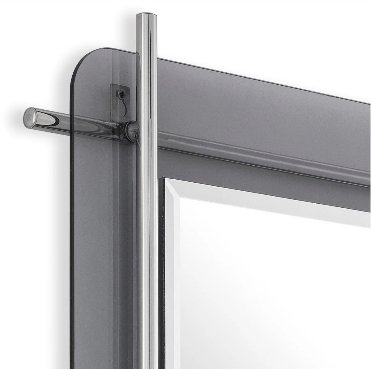 Casa Padrino espejo de lujo plata / gris 85,5 x 5 x A. 85,5 cm - Espejo de pared cuadrado con borde de vidrio tintado en gris y varillas de acero inoxidable - Colecci¨®n de Lujo