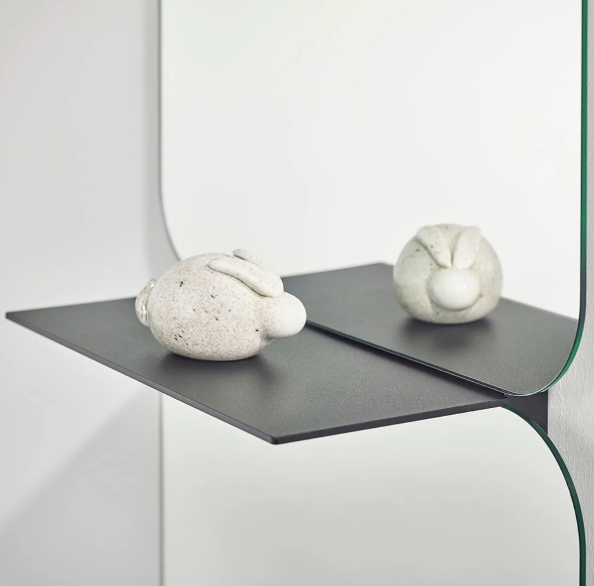 Casa Padrino Espejo de Lujo Negro 47 x H. 180 cm - Espejo de Pared de Dise?o con Estante de Aluminio con Revestimiento en Polvo
