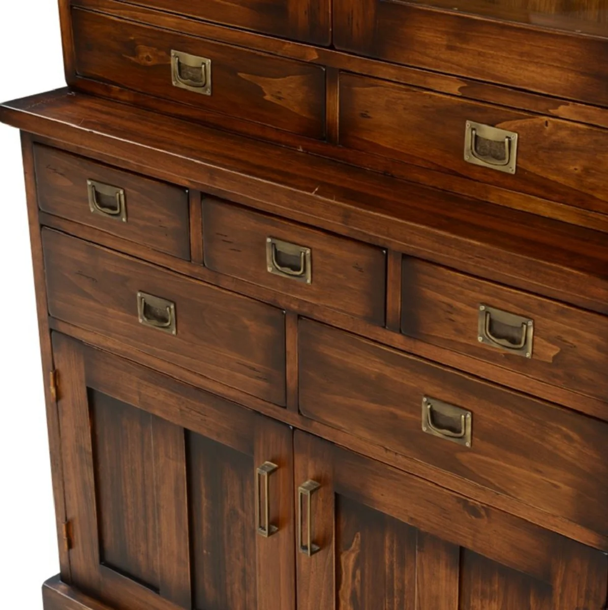 Casa Padrino vitrina de estilo vintage de lujo marr¨®n / lat¨®n 102,5 x 46 x A. 198 cm - Vitrina de madera maciza con 4 puertas y 7 cajones - Muebles de estilo vintage - Muebles de lujo