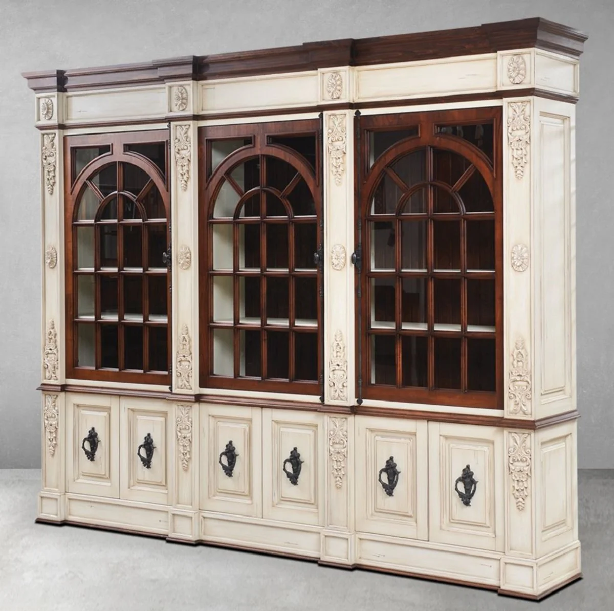 Casa Padrino armario de libros de estilo vintage de lujo crema antiguo / marr¨®n oscuro / negro 323 x 51 x A. 255 cm - Muebles de madera maciza - Muebles de estilo vintage - Muebles de lujo