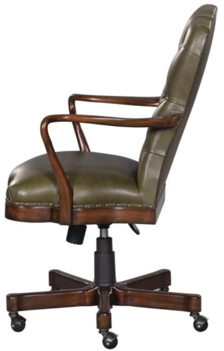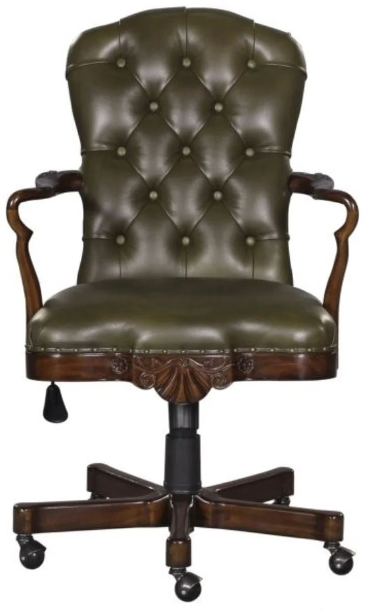 Casa Padrino silla de oficina de cuero genuino marr¨®n / verde 63 x 68 x H. 102 cm - Silla Giratoria de Lujo