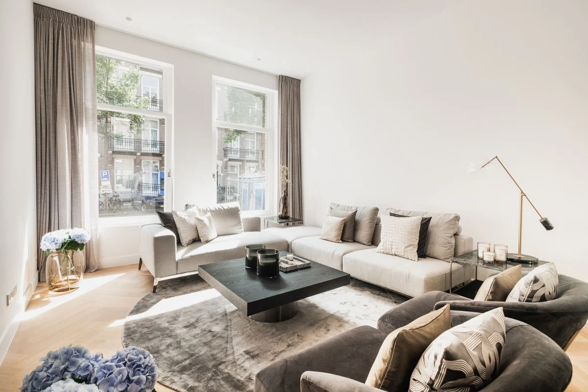 Casa Padrino sof¨¢ de lujo gris / plata 400 x 178 x A. 56 cm - Sof¨¢ de esquina ajustable para sal¨®n - Muebles de sal¨®n de lujo