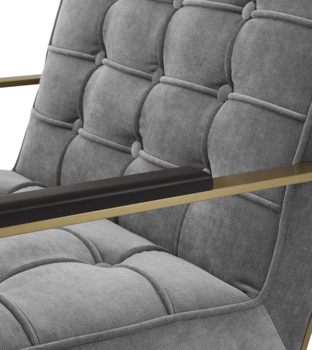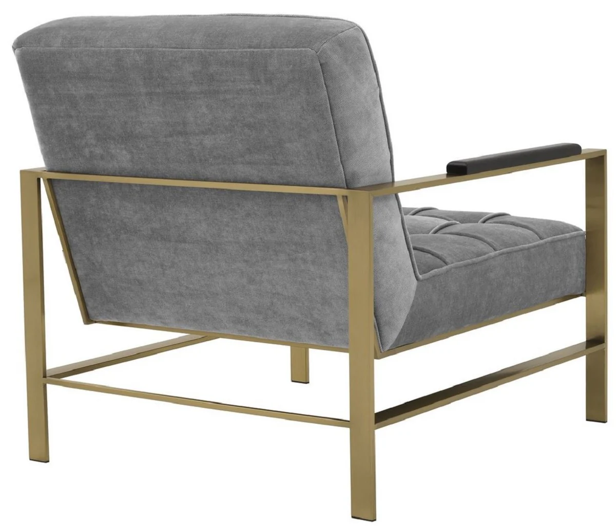 Casa Padrino sill¨®n de lujo gris / lat¨®n / negro 70,5 x 80,5 x A. 75 cm - Sill¨®n de sal¨®n con estructura de acero inoxidable - Muebles de sal¨®n de lujo