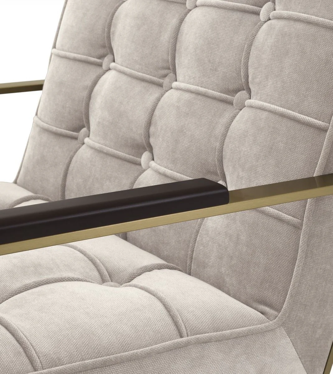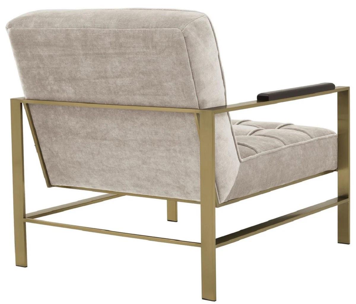 Casa Padrino sill¨®n de lujo arena / lat¨®n / negro 70,5 x 80,5 x A. 75 cm - Sill¨®n de sal¨®n con estructura de acero inoxidable - Muebles de sal¨®n de lujo