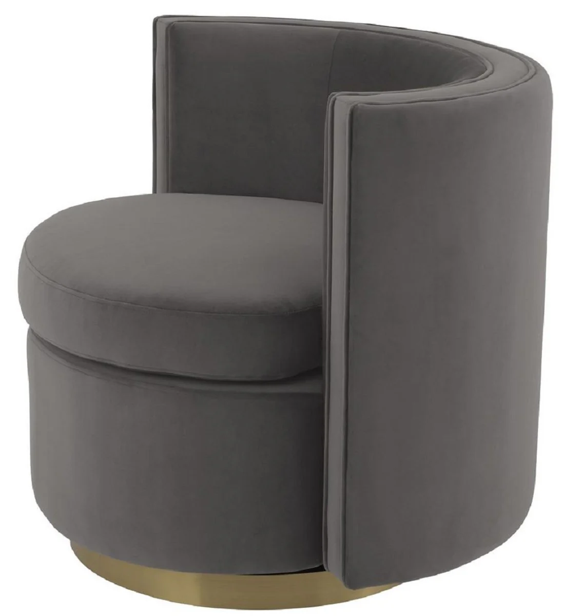 Casa Padrino sill¨®n giratorio de lujo gris / oro mate 80 x 73 x A. 71,5 cm - Sill¨®n de sal¨®n tapizado con terciopelo fino - Muebles de Lujo