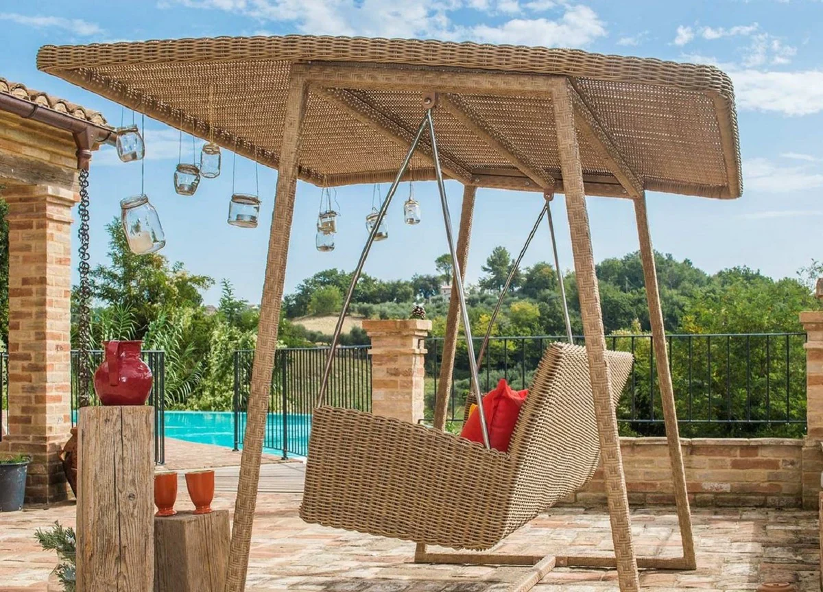 Casa Padrino columpio de jard¨ªn de lujo natural 226 x 190 x A. 181 cm - Columpio de Hollywood resistente a la intemperie con toldo para el sol - Muebles de jard¨ªn - Muebles de jard¨ªn - Calidad de Lujo