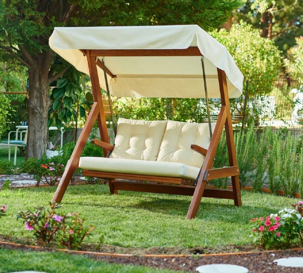 Casa Padrino columpio de Hollywood de lujo crema / marr¨®n - Columpio de jard¨ªn moderno resistente a la intemperie con toldo para el sol - Columpio de Terraza de Jard¨ªn - Muebles de Hotel