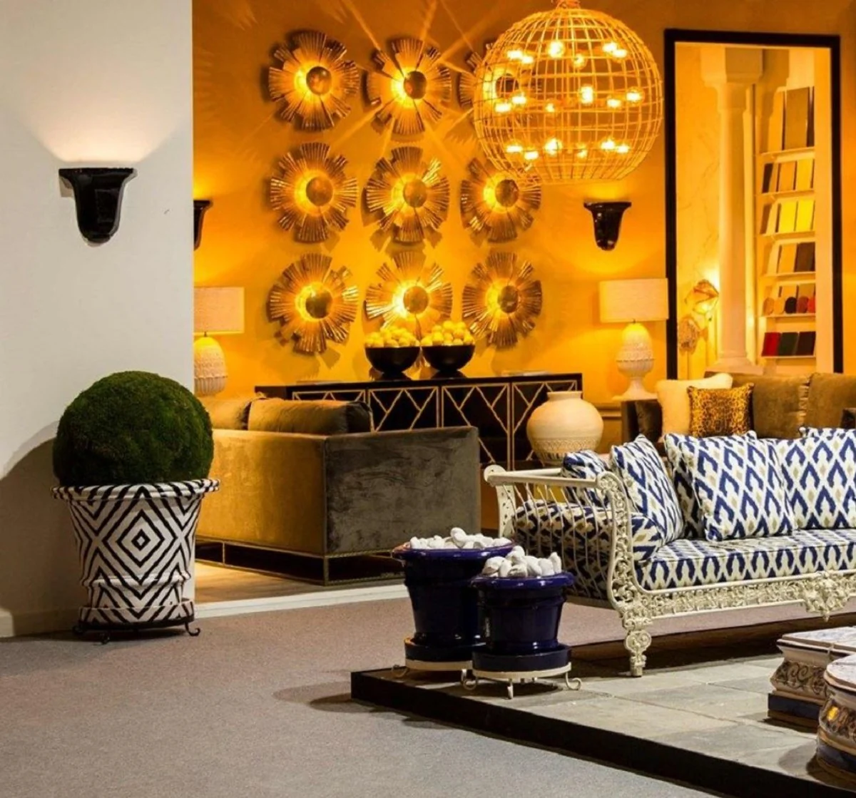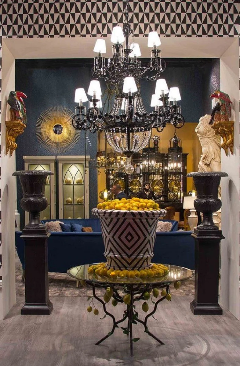 Casa Padrino maceta de lujo blanco / negro ? 79 x A. 63 cm - Maceta de cer¨¢mica hecha a mano y pintada a mano - Terrazas Balcones Jard¨ªn Decoraci¨®n - Accesorios de Decoraci¨®n de Lujo