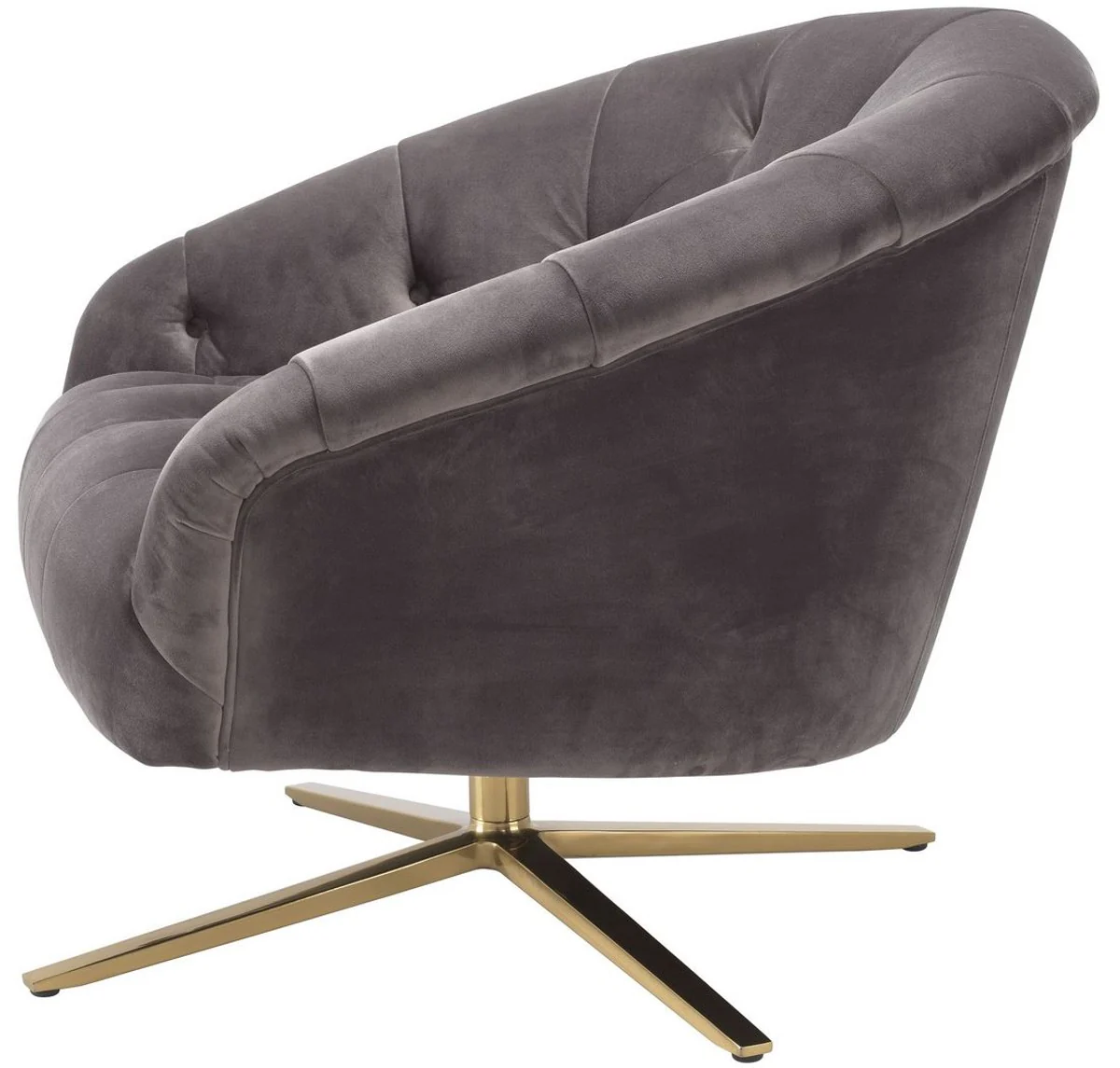 Casa Padrino sill¨®n giratorio de lujo gris / lat¨®n 86 x 87 x A. 74 cm - Sill¨®n de sal¨®n con terciopelo fino - Muebles de sal¨®n de lujo