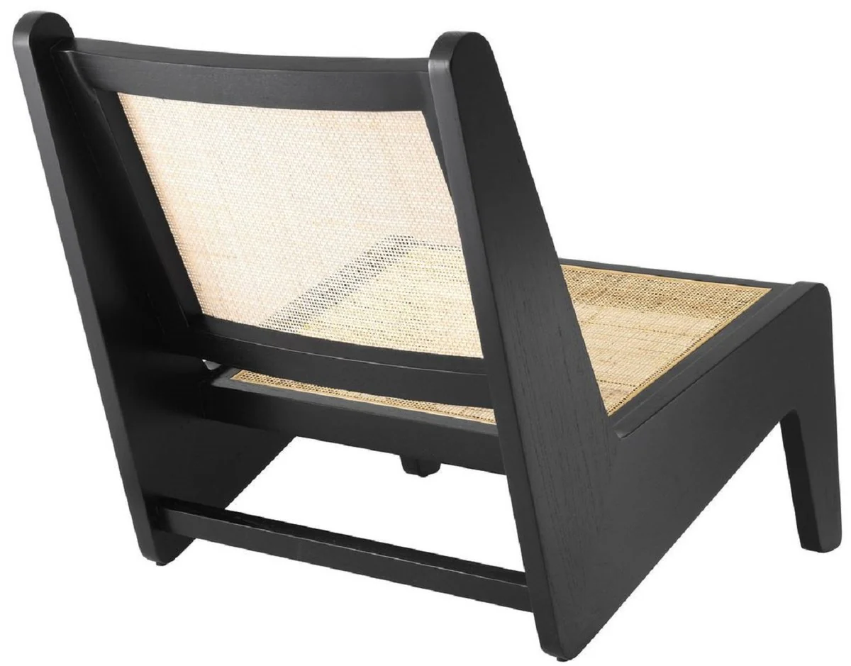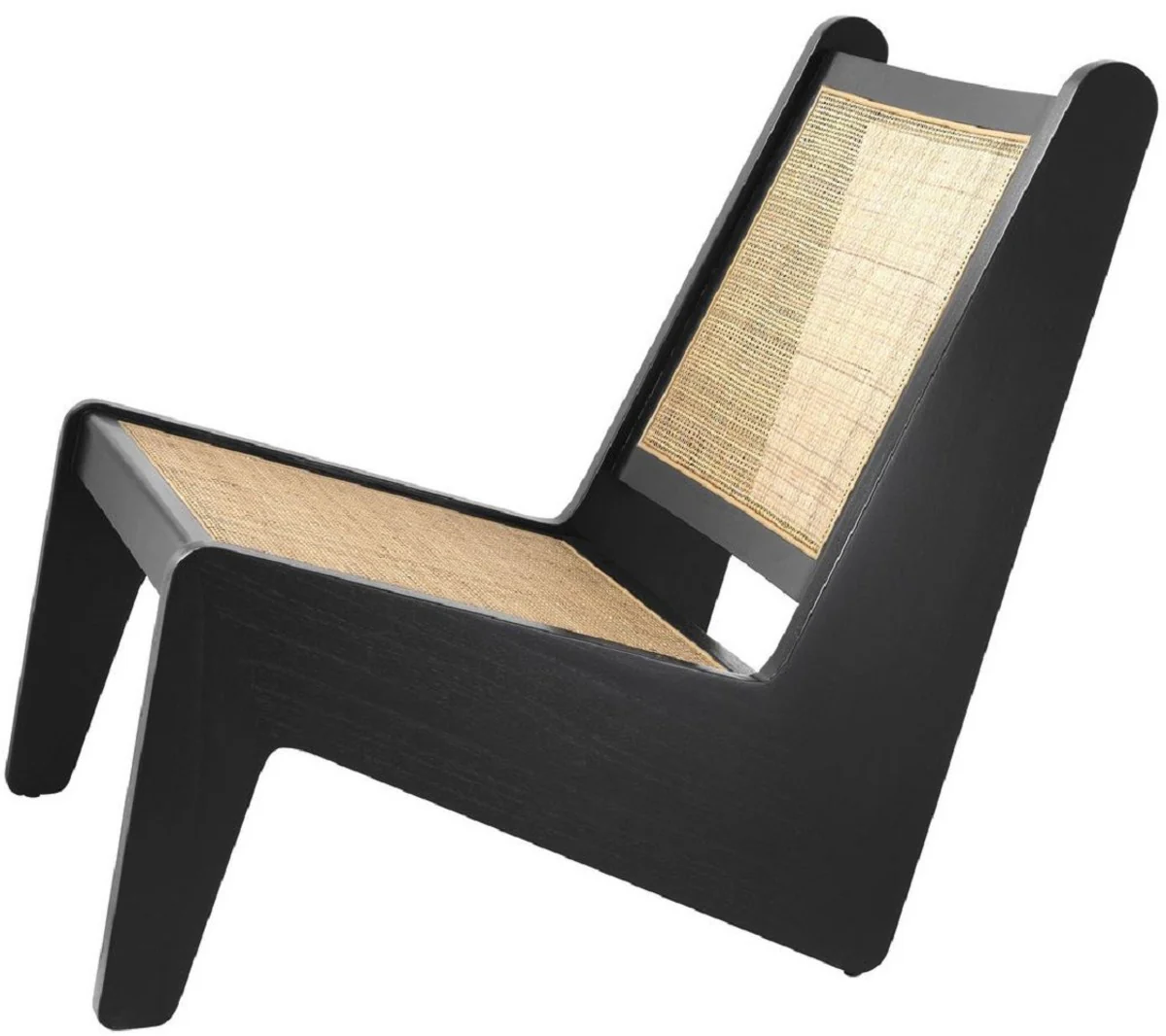 Casa Padrino sill¨®n de sal¨®n de dise?o negro / natural 75 x 89 x A. 77,5 cm - Sill¨®n de madera maciza con tejido de rat¨¢n tejido a mano - Muebles de Lujo