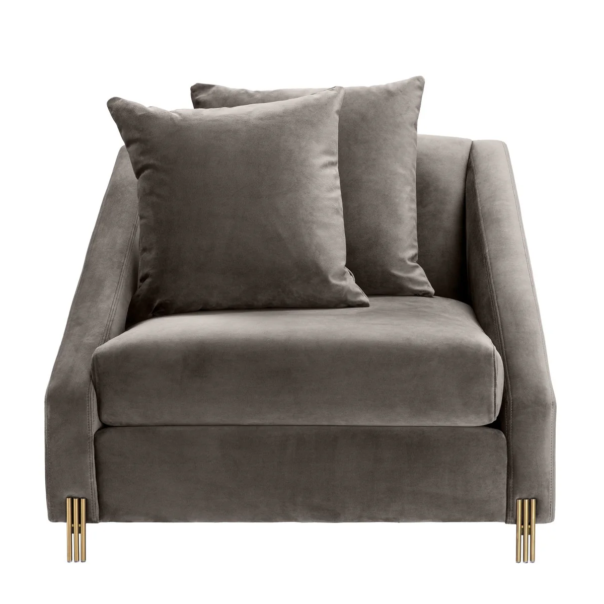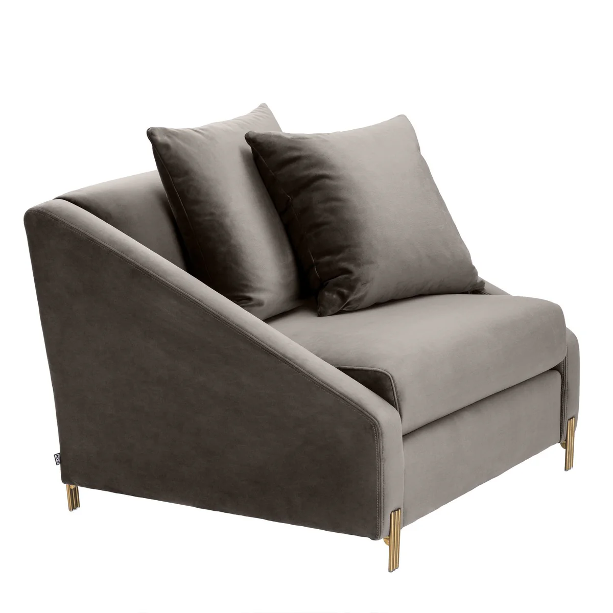 Casa Padrino sof¨¢ lounge de lujo gris - greige / lat¨®n 223 x 95 x H. 68 cm - Sof¨¢ de Sala del Lado Derecho con Terciopelo Fino y 2 Almohadas