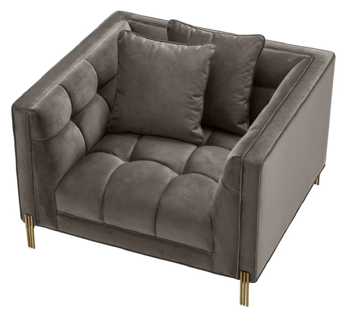 Casa Padrino sill¨®n de terciopelo de lujo con 2 cojines gris / lat¨®n 104 x 95 x H. 68 cm - Muebles de Sal¨®n de Lujo