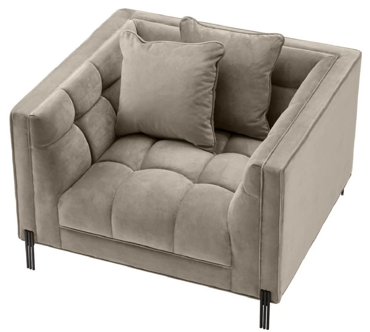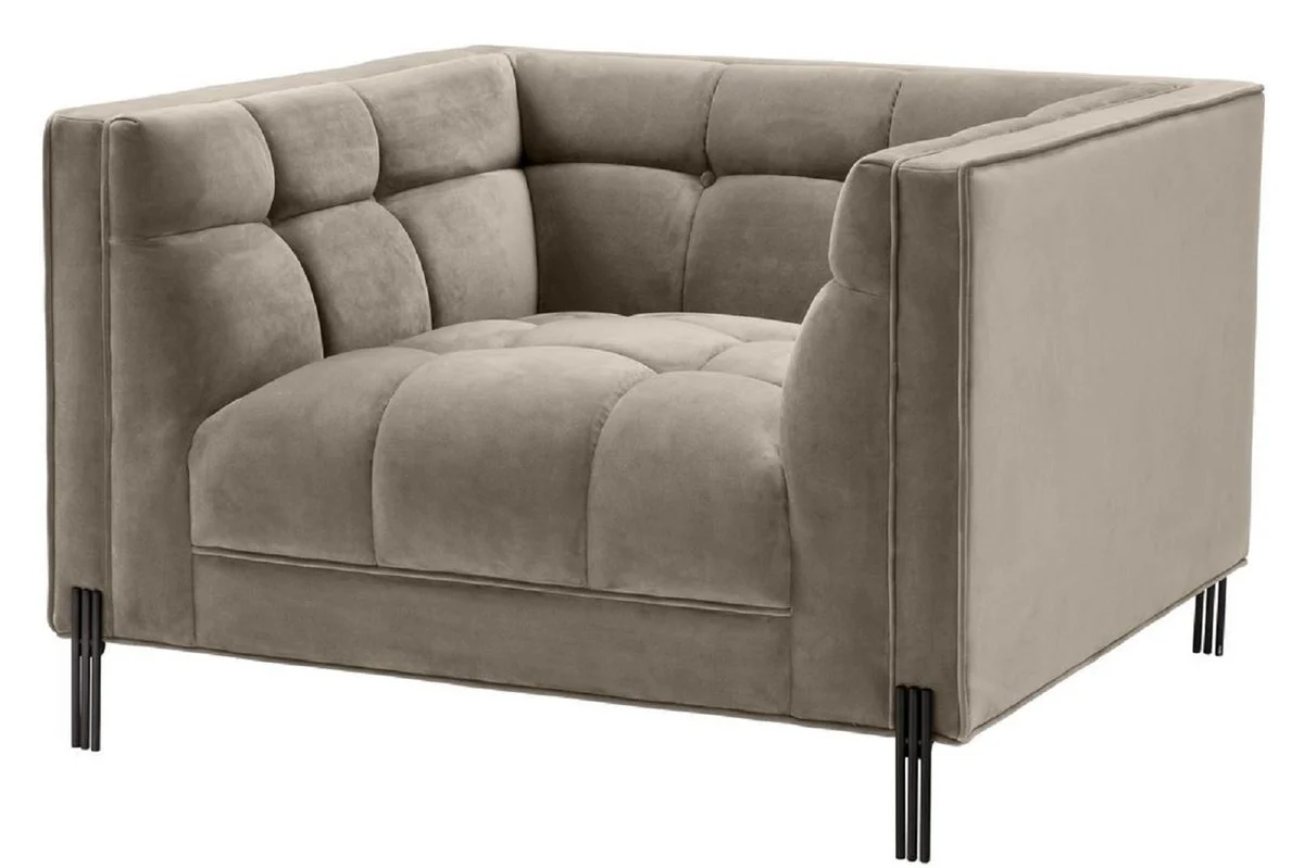 Casa Padrino sill¨®n de terciopelo de lujo con 2 cojines greige / negro 104 x 95 x H. 68 cm - Muebles de Sal¨®n de Lujo