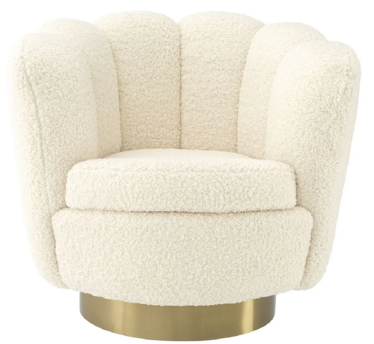 Casa Padrino sill¨®n giratorio de lujo blanco / lat¨®n 95 x 83 x H. 83 cm - Sill¨®n de Sal¨®n con Piel de Cordero Artificial - Muebles de Lujo