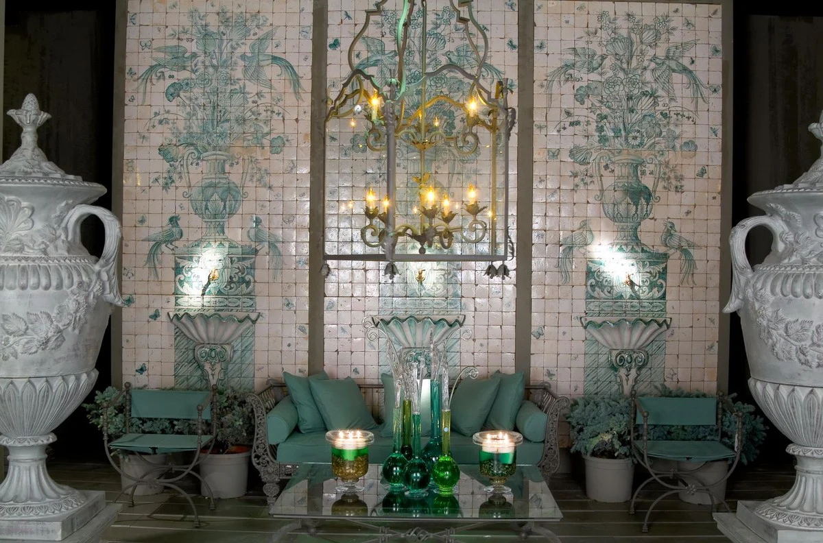 Casa Padrino sof¨¢ de jard¨ªn de lujo de 3 plazas natural / verde 260 cm