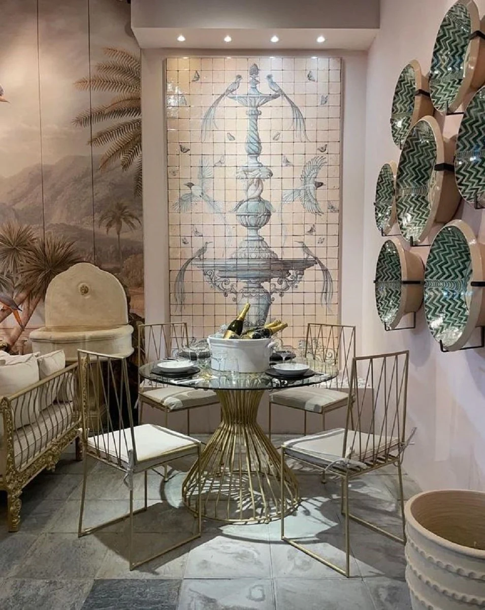 Casa Padrino mesa Art Nouveau de lujo gris ? 60 x A. 75 cm - Mesa de jard¨ªn de hierro forjado a mano con tapa de vidrio - Muebles de Jard¨ªn y Comedor Art Nouveau de Lujo