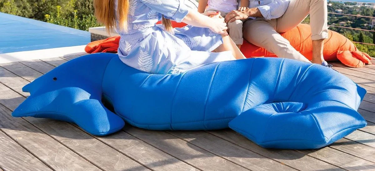 Casa Padrino puf de lujo caballito de mar azul 170 x 70 x A. 35 cm - Puf flotante - Coj¨ªn de asiento hecho a mano - Decoraci¨®n de jard¨ªn - Decoraci¨®n de terraza - Decoraci¨®n de piscina