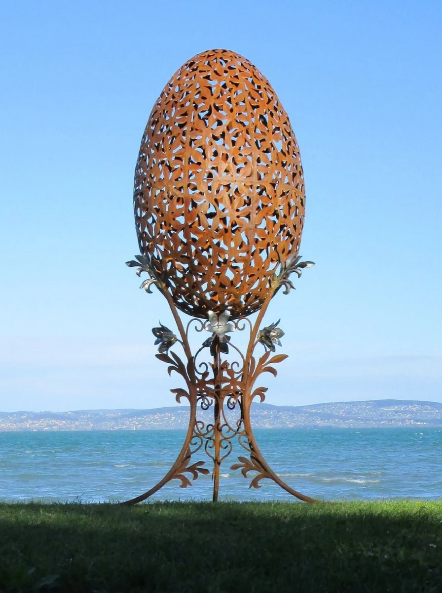 Casa Padrino escultura de jard¨ªn de acero XXL barroco de lujo huevo ¨®xido / plata 107 x 95 x A. 200 cm - Decoraci¨®n de jard¨ªn XXL enorme - Decoraci¨®n exterior - Accesorios de jard¨ªn