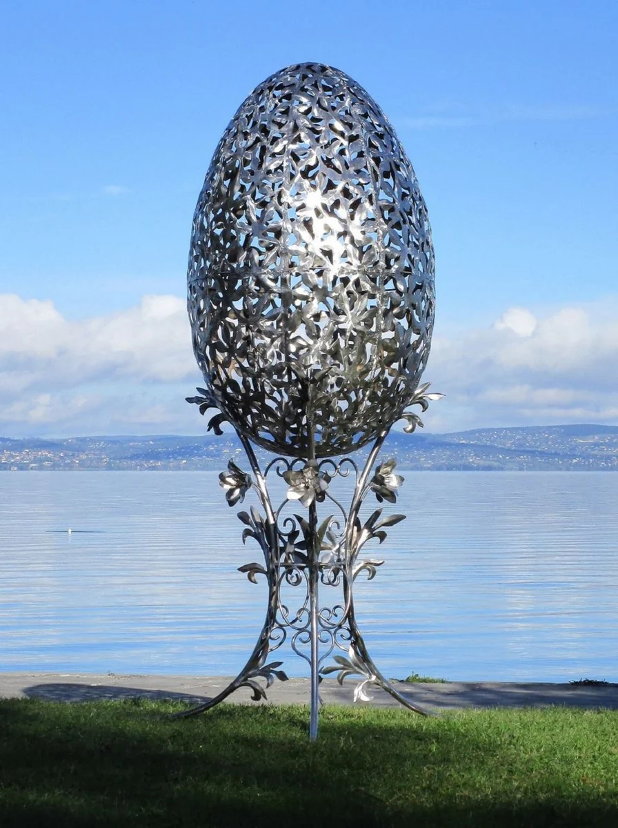 Casa Padrino escultura de jard¨ªn de acero inoxidable XXL barroco de lujo huevo plata 107 x 95 x A. 200 cm - Decoraci¨®n de jard¨ªn XXL enorme - Decoraci¨®n exterior - Accesorios de jard¨ªn