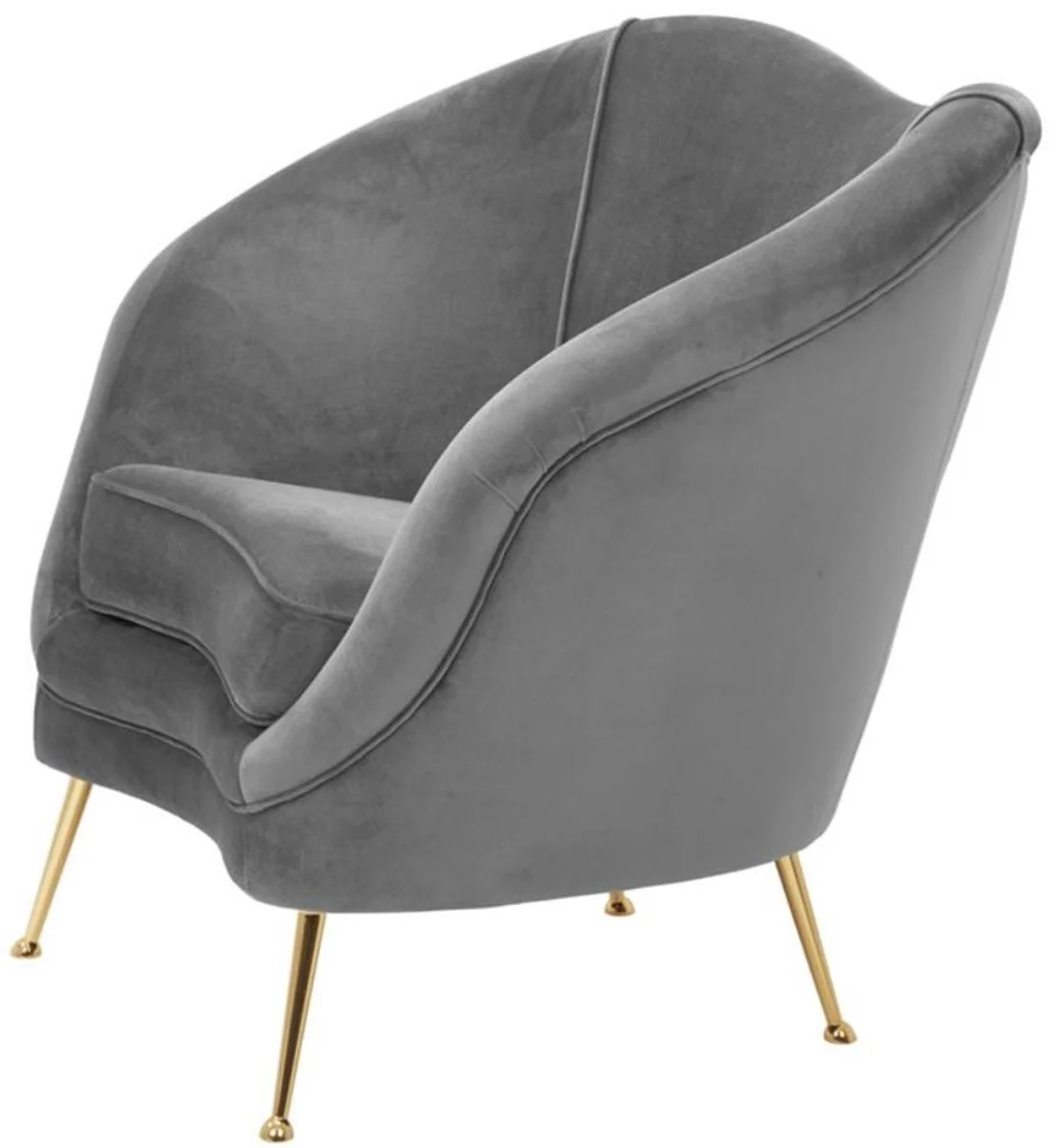 Casa Padrino sillón de salón de lujo gris / latón 85 x 77 x H. 80 cm - Colección de Lujo