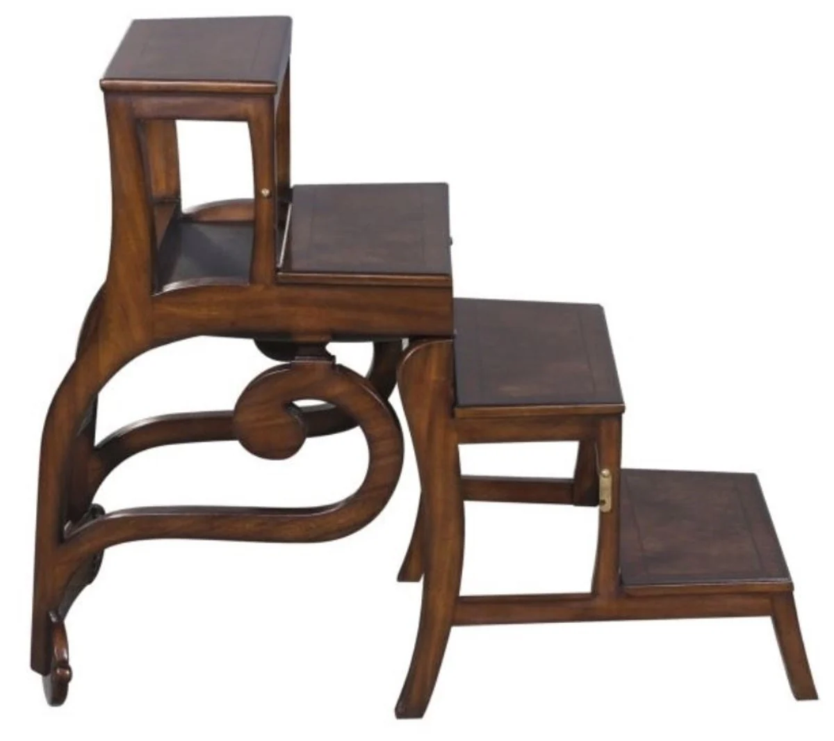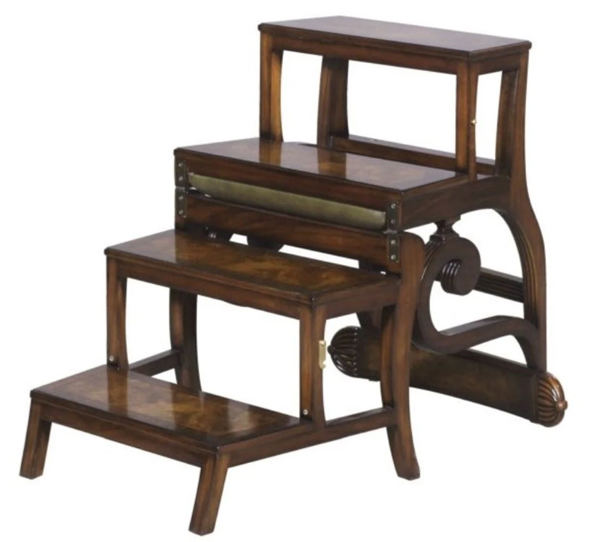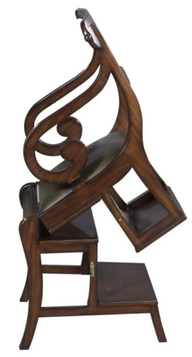 Casa Padrino silla de biblioteca de caoba marrón / verde 57 x 53 x H. 89 cm - Silla de Lujo con Escalera