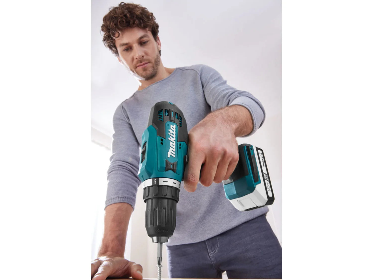 Makita 18 V cordless drill/driver set DF488D, with 2 batteries and charger