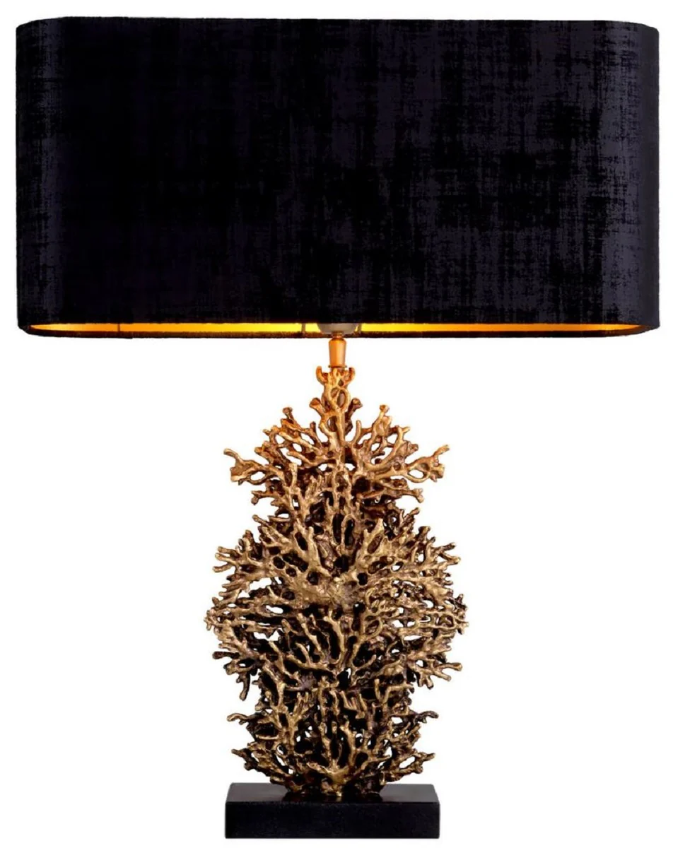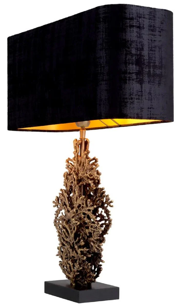 Casa Padrino lámpara de mesa de lujo latón vintage / negro 50 x 22 x A. 68,5 cm - Lámpara de escritorio con pantalla y pie de granito - Lámparas de mesa de lujo - Lámparas de escritorio