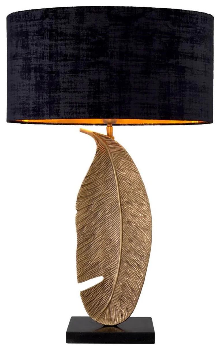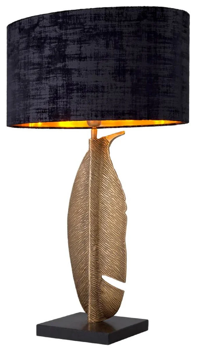 Casa Padrino lámpara de mesa de lujo latón vintage / negro 50 x 30 x A. 76,5 cm - Lámpara de escritorio con pantalla ovalada y pie de granito - Lámparas de mesa de lujo - Lámparas de escritorio