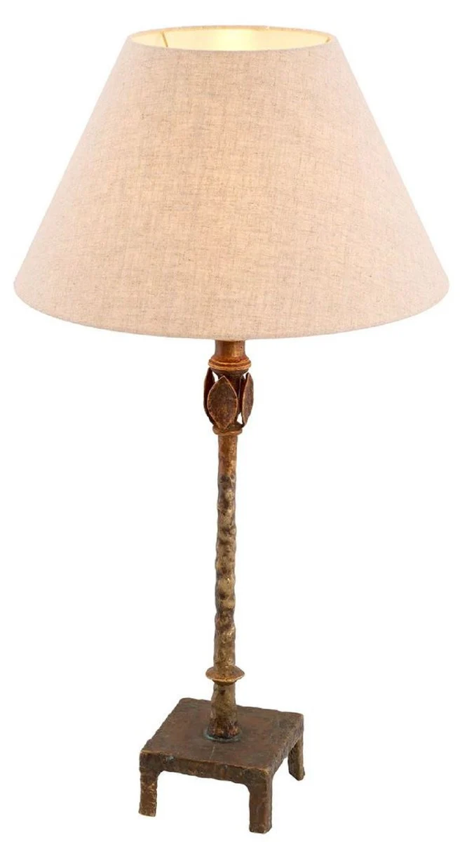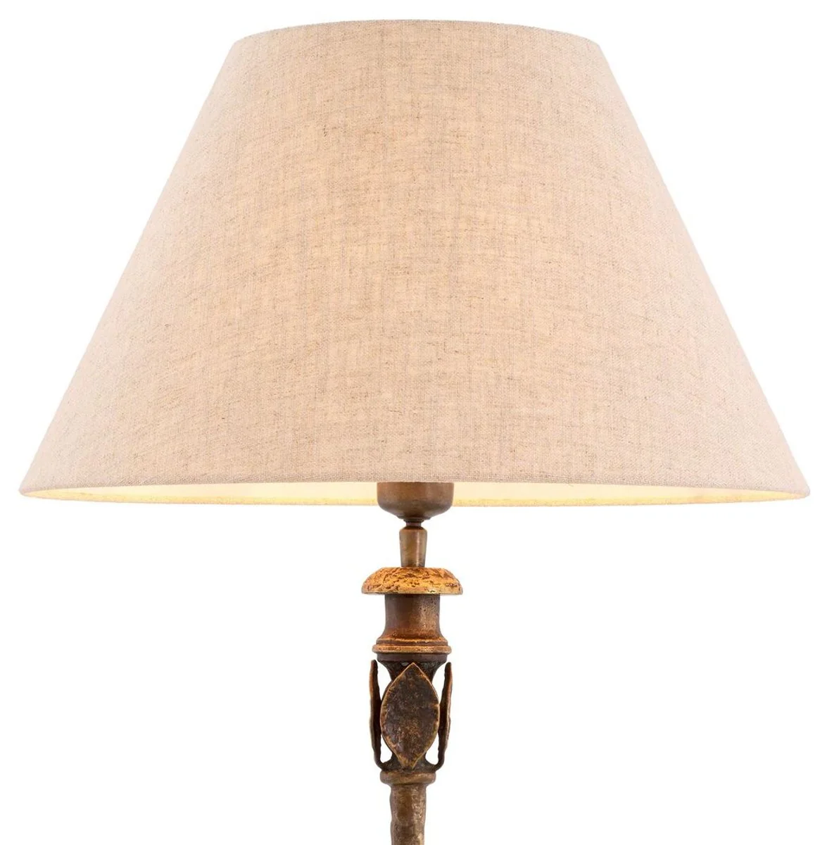 Casa Padrino lámpara de mesa de lujo latón vintage / beige Ø 44,5 x A. 84 cm - Lámpara de escritorio con pantalla redonda - Lámparas de mesa de lujo - Lámparas de escritorio de lujo