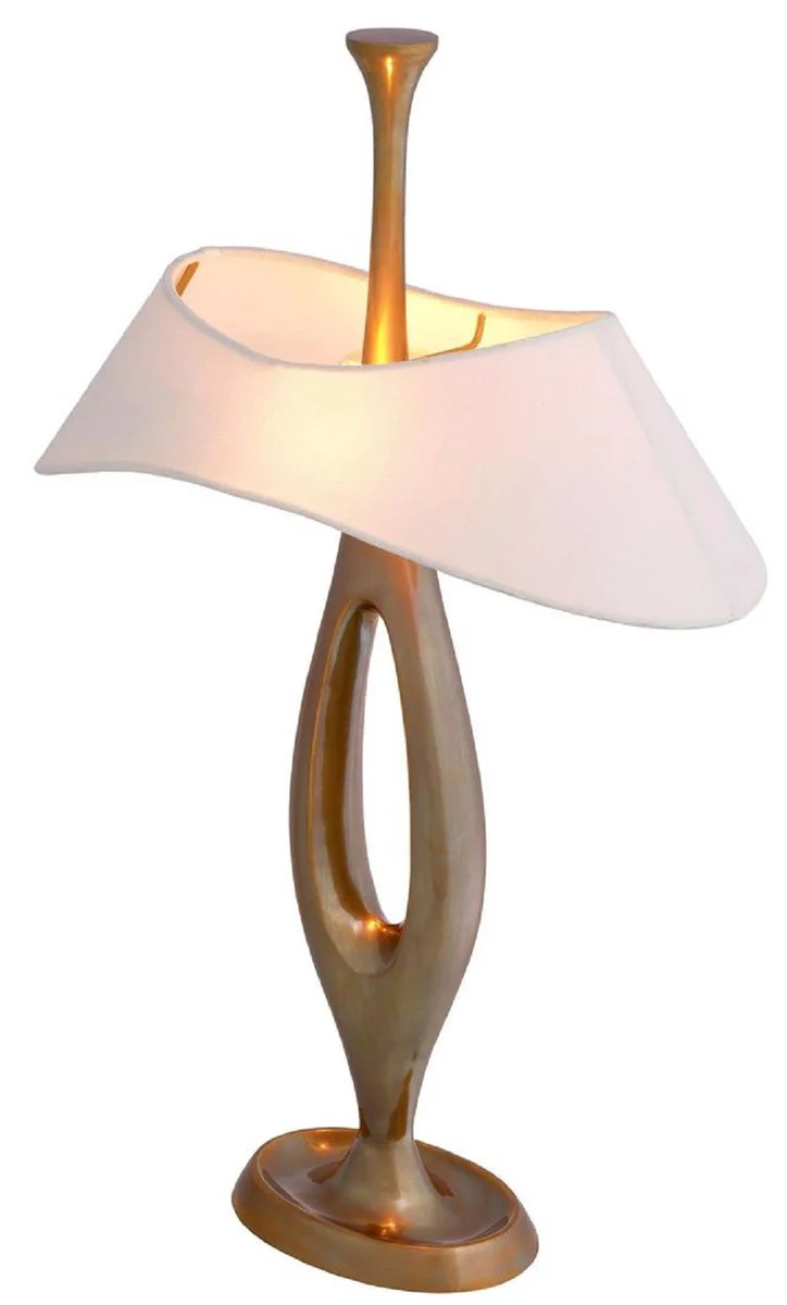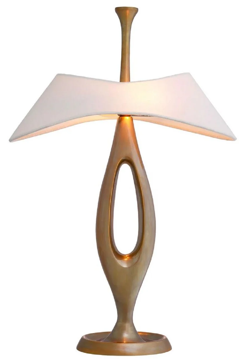 Casa Padrino lámpara de mesa de lujo bronce de cañón / latón / blanco 41,5 x A. 63 cm - Lámpara de escritorio de latón con pantalla - Lámparas de mesa de lujo - Muebles de lujo - Interior de lujo