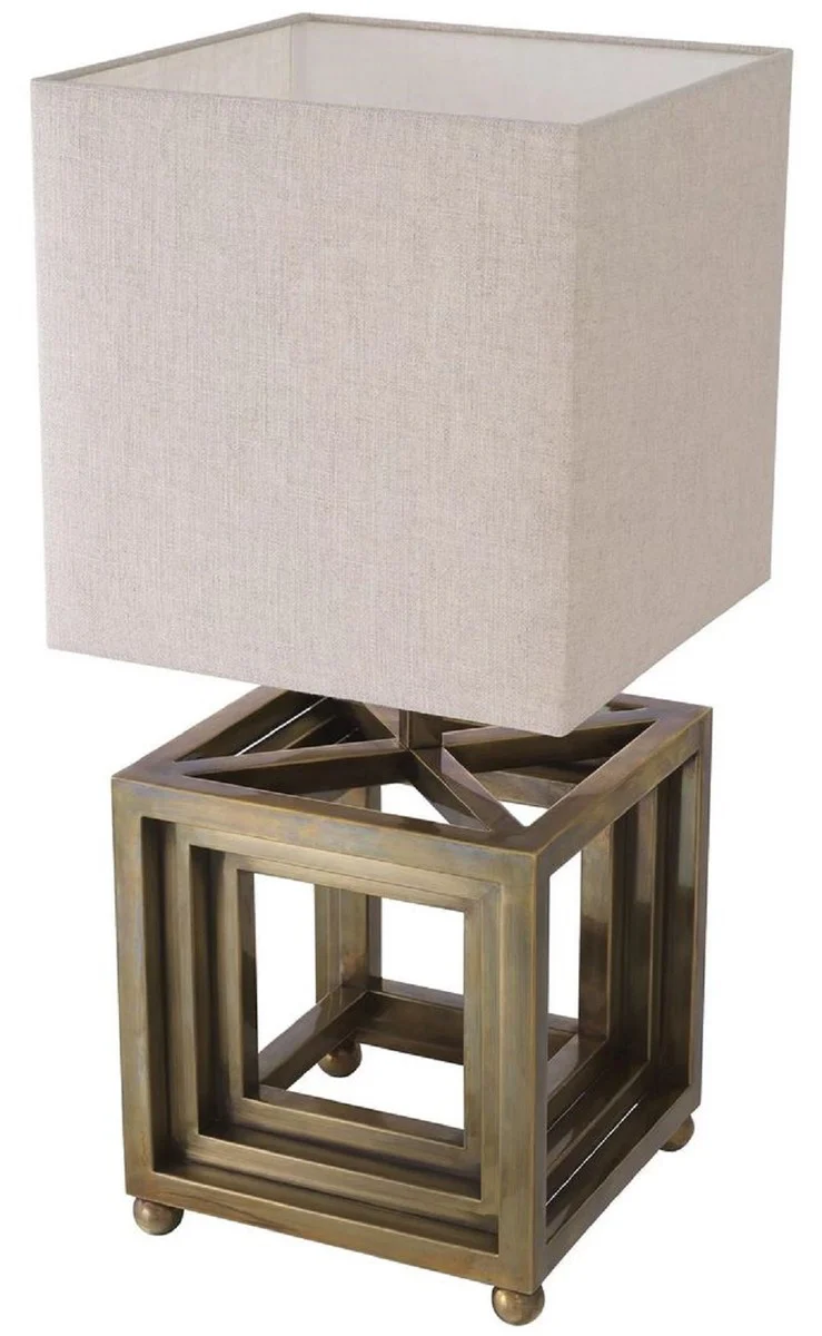 Casa Padrino lámpara de mesa de lujo latón vintage / beige 30 x 30 x A. 65,5 cm - Lámpara de escritorio con pantalla cuadrada - Lámparas de mesa de lujo - Lámparas de escritorio de lujo