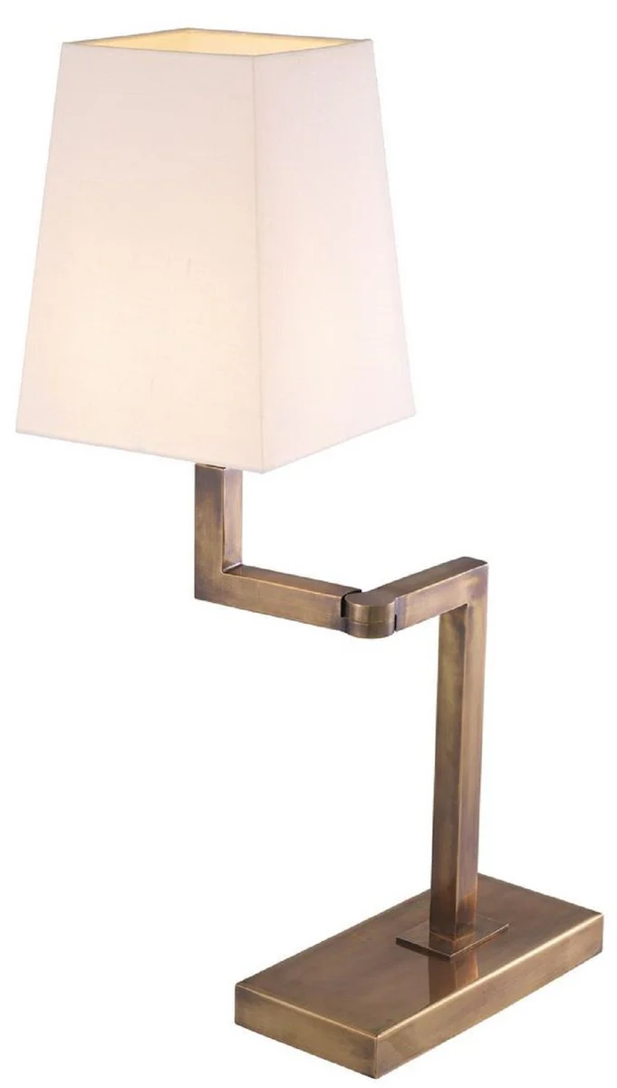 Casa Padrino lámpara de mesa de lujo latón vintage / blanco A. 69 cm - Lámpara de escritorio noble con brazo giratorio y pantalla - Calidad de Lujo