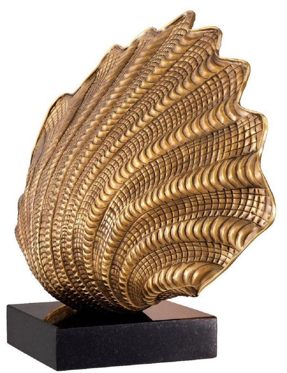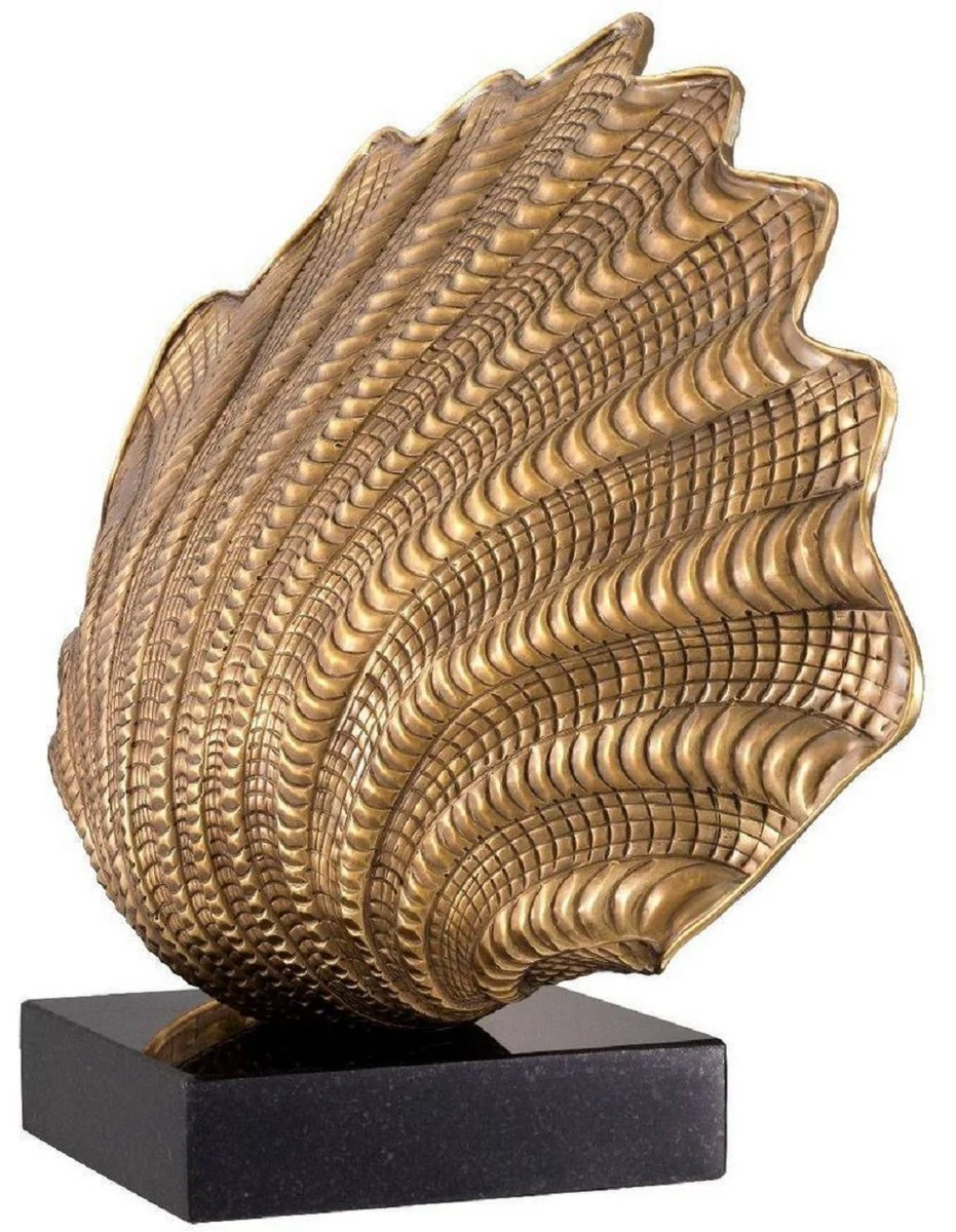 Casa Padrino lámpara de mesa de lujo en forma de concha con base de granito latón vintage / negro 51 x 16 x A. 33,5 cm - Calidad de Lujo