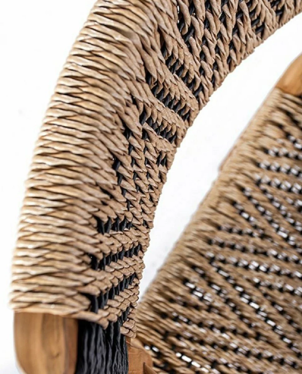 Casa Padrino silla de comedor de lujo con reposabrazos natural / negro 58 x 55 x A. 80 cm - Silla de jard¨ªn de lujo de madera maciza con tejido de rat¨¢n - Muebles de comedor de lujo