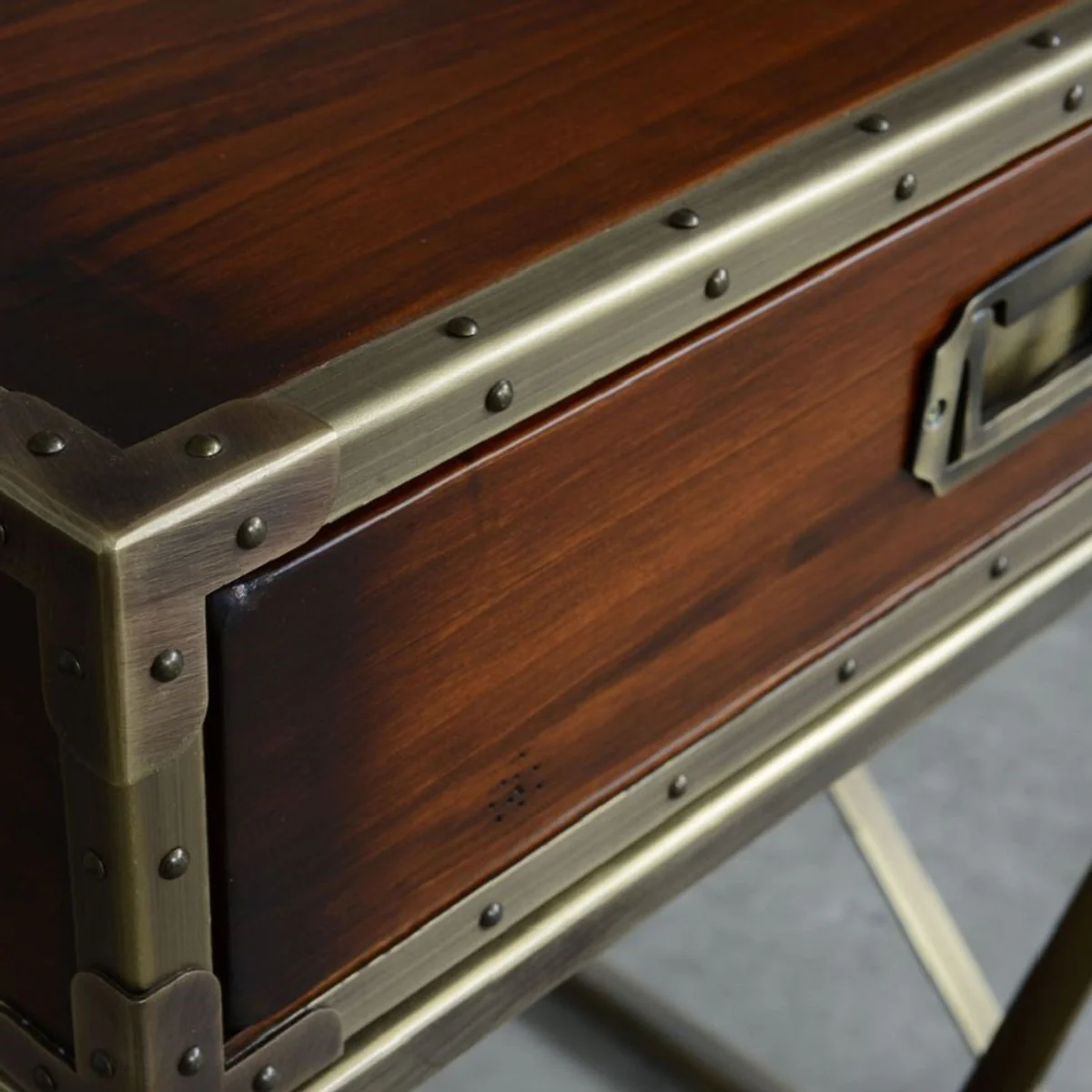 Casa Padrino mesa auxiliar estilo vintage de lujo marr¨®n / lat¨®n 55,5 x 55,5 x A. 72 cm - Mesita de noche cuadrada con caj¨®n - Muebles sal¨®n - Muebles dormitorio - Muebles estilo vintage de lujo
