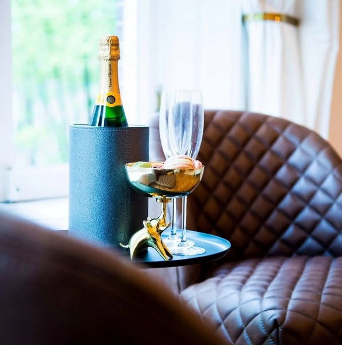 Casa Padrino sill¨®n de cuero de lujo marr¨®n / negro / oro 62 x 73 x H. 79 cm - Muebles de Sala de Estar - Muebles de Cuero Genuino