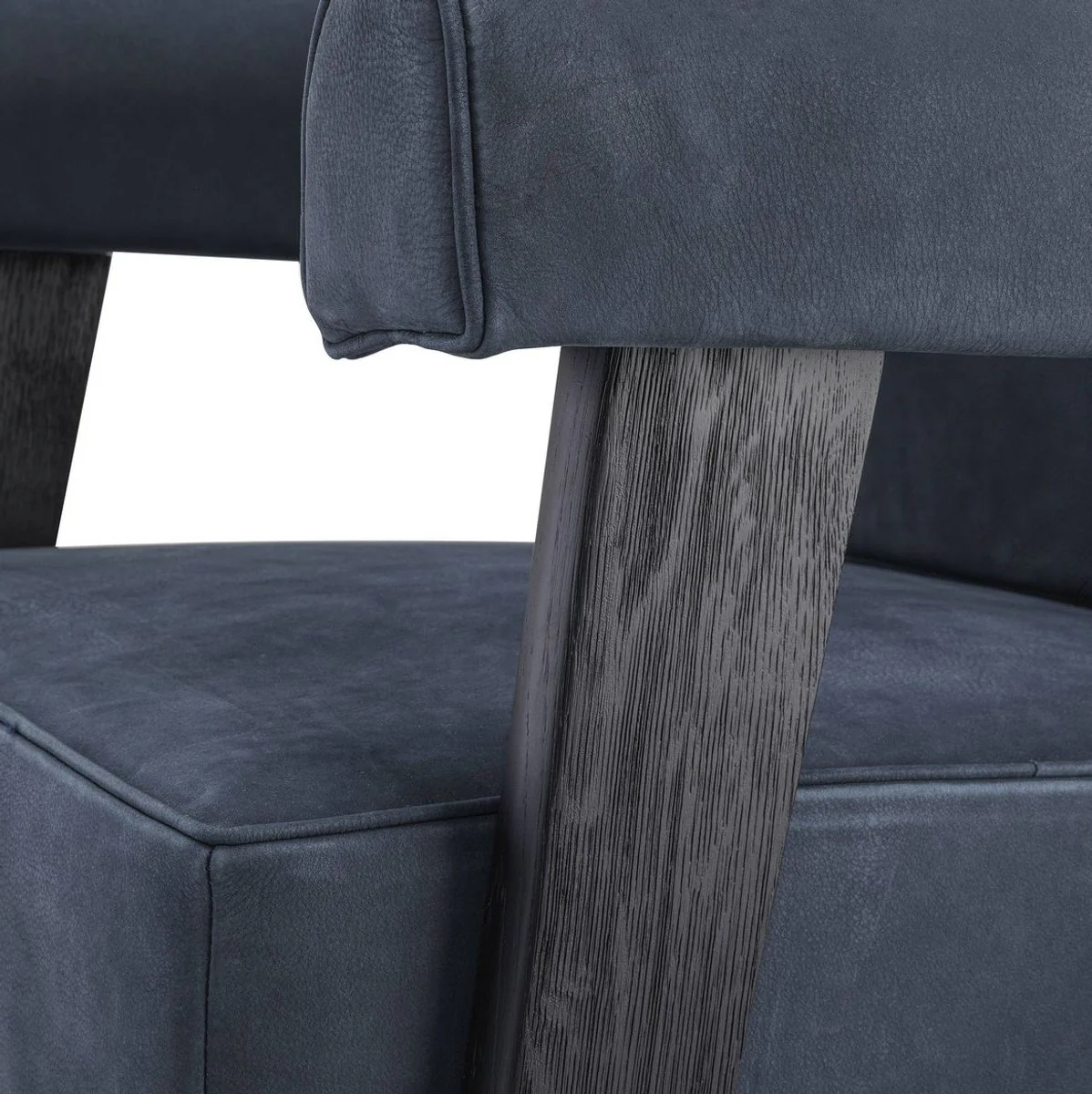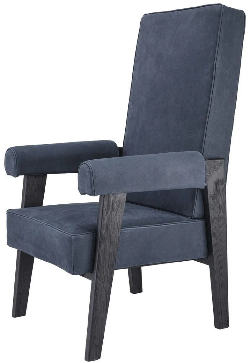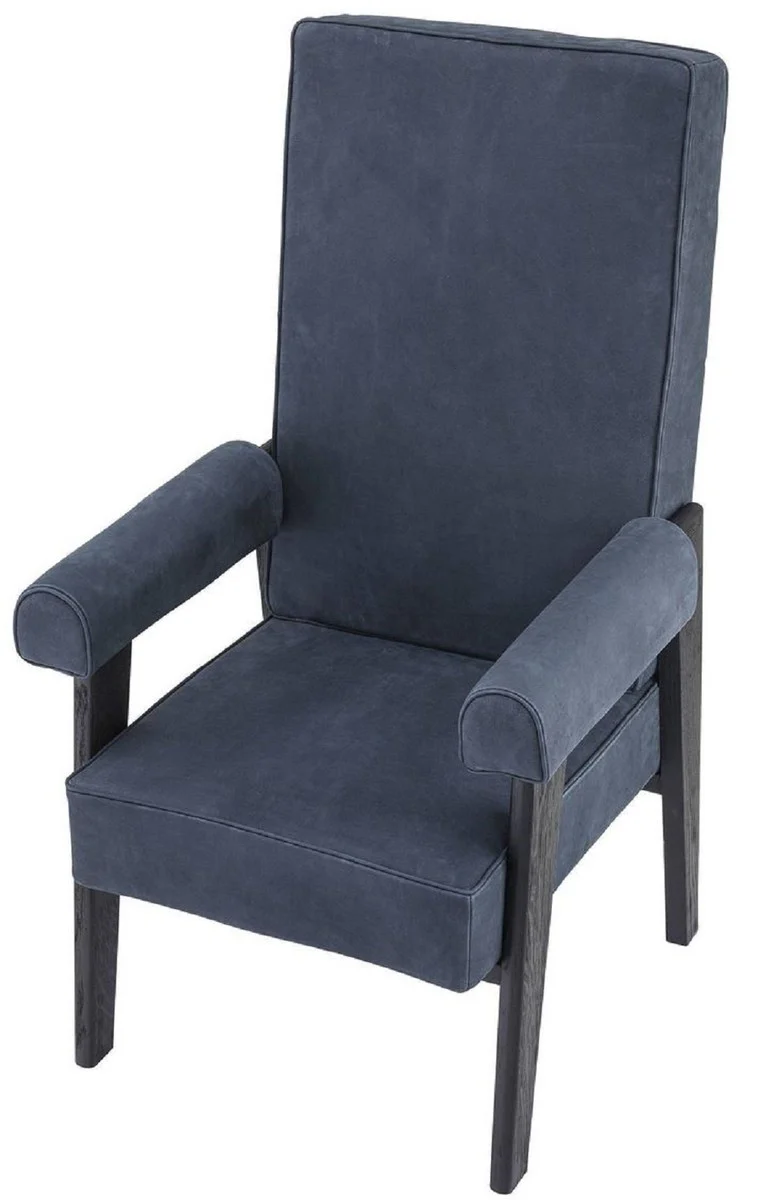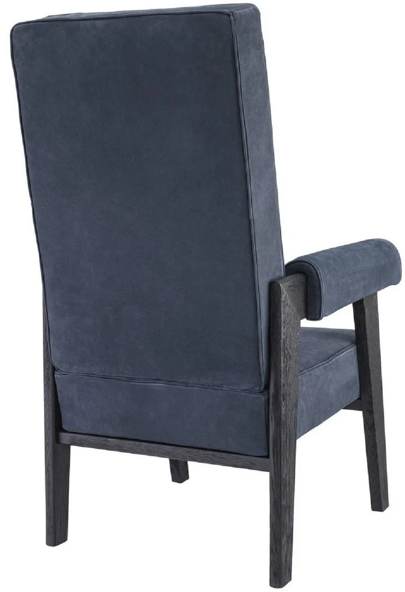 Casa Padrino sill¨®n de lujo de piel genuina con respaldo alto azul / negro 70 x 78 x A. 123 cm - Sill¨®n de sal¨®n con cuero fino de b¨²falo - Muebles de Lujo