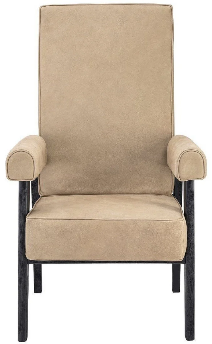 Casa Padrino sill¨®n de lujo de piel genuina con respaldo alto beige / negro 70 x 78 x A. 123 cm - Sill¨®n de sal¨®n con cuero fino de b¨²falo - Muebles de Lujo
