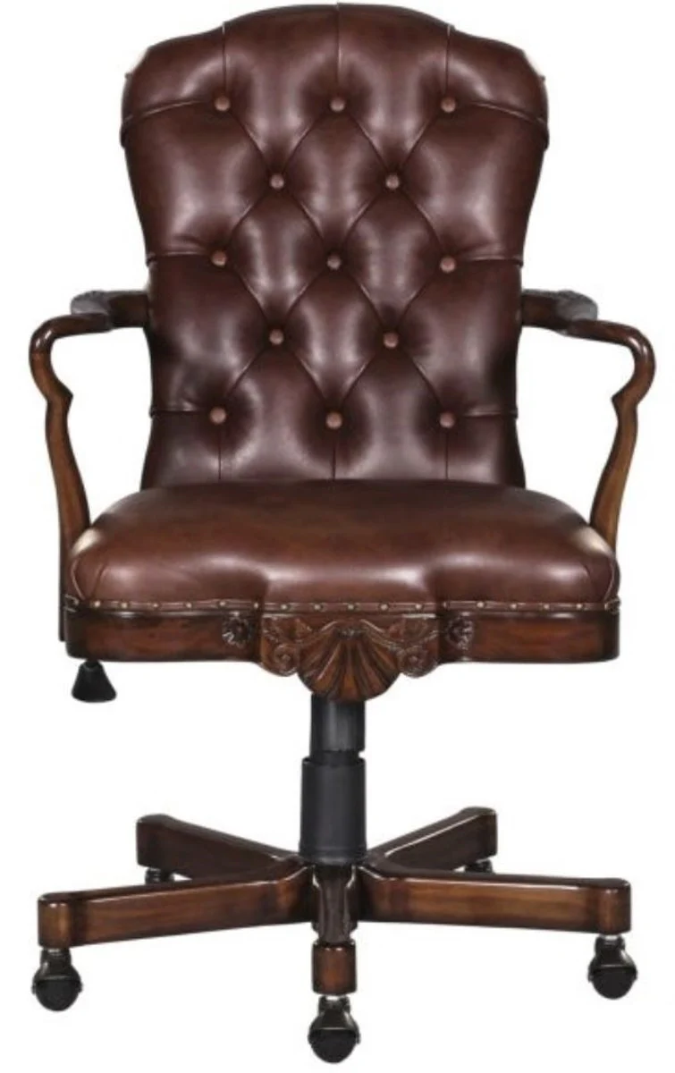 Casa Padrino silla de oficina / silla giratoria de cuero genuino marron 63 x 68 x H. 102 cm - Muebles de Oficina de Lujo