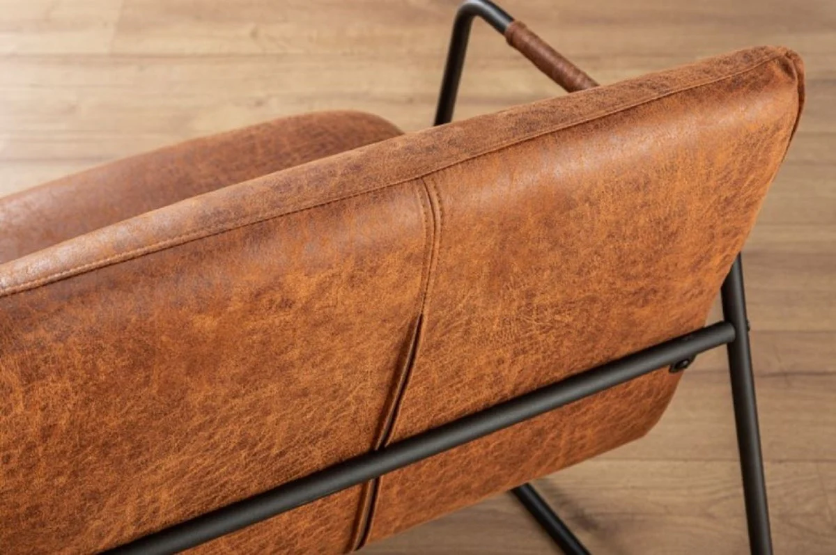 Casa Padrino sill¨®n retro lounge marr¨®n claro vintage / negro 71 x 72 x A. 79 cm - Sill¨®n de cuero sint¨¦tico con estructura de metal - Muebles de sala