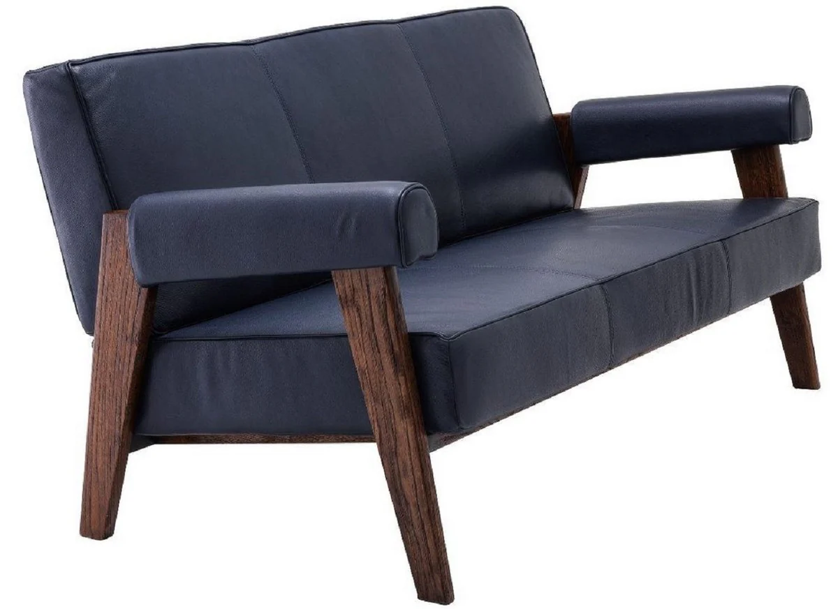 Casa Padrino sof¨¢ de piel genuina de lujo azul / marr¨®n 160 x 78 x A. 74 cm - Sof¨¢ de sal¨®n con cuero de b¨²falo fino - Muebles de sal¨®n - Colecci¨®n de Lujo