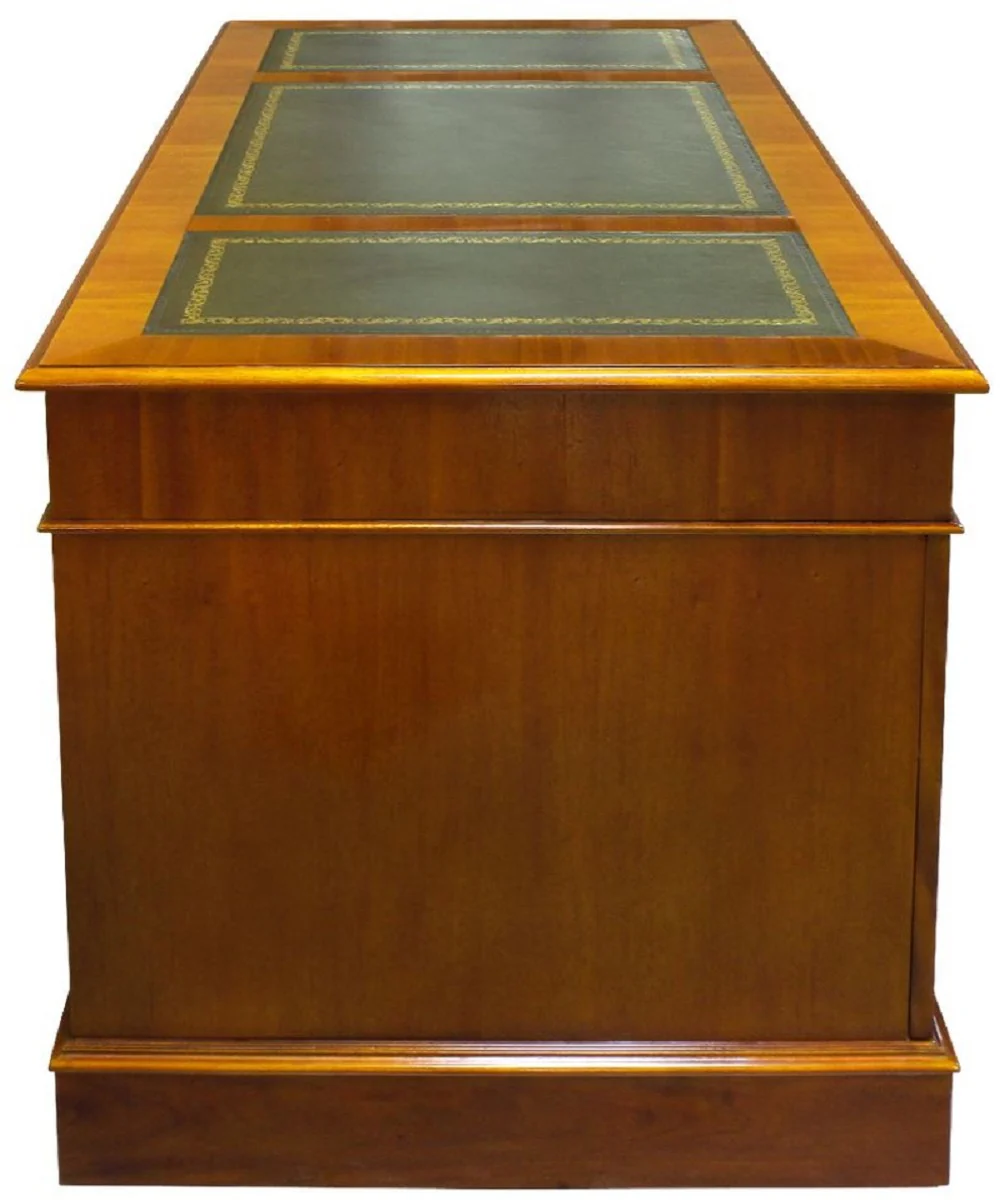 Casa Padrino escritorio de lujo marr¨®n claro / verde / oro 140 x 70 x A. 78 cm - Mesa de oficina de madera maciza de estilo ingl¨¦s - Muebles de oficina de lujo
