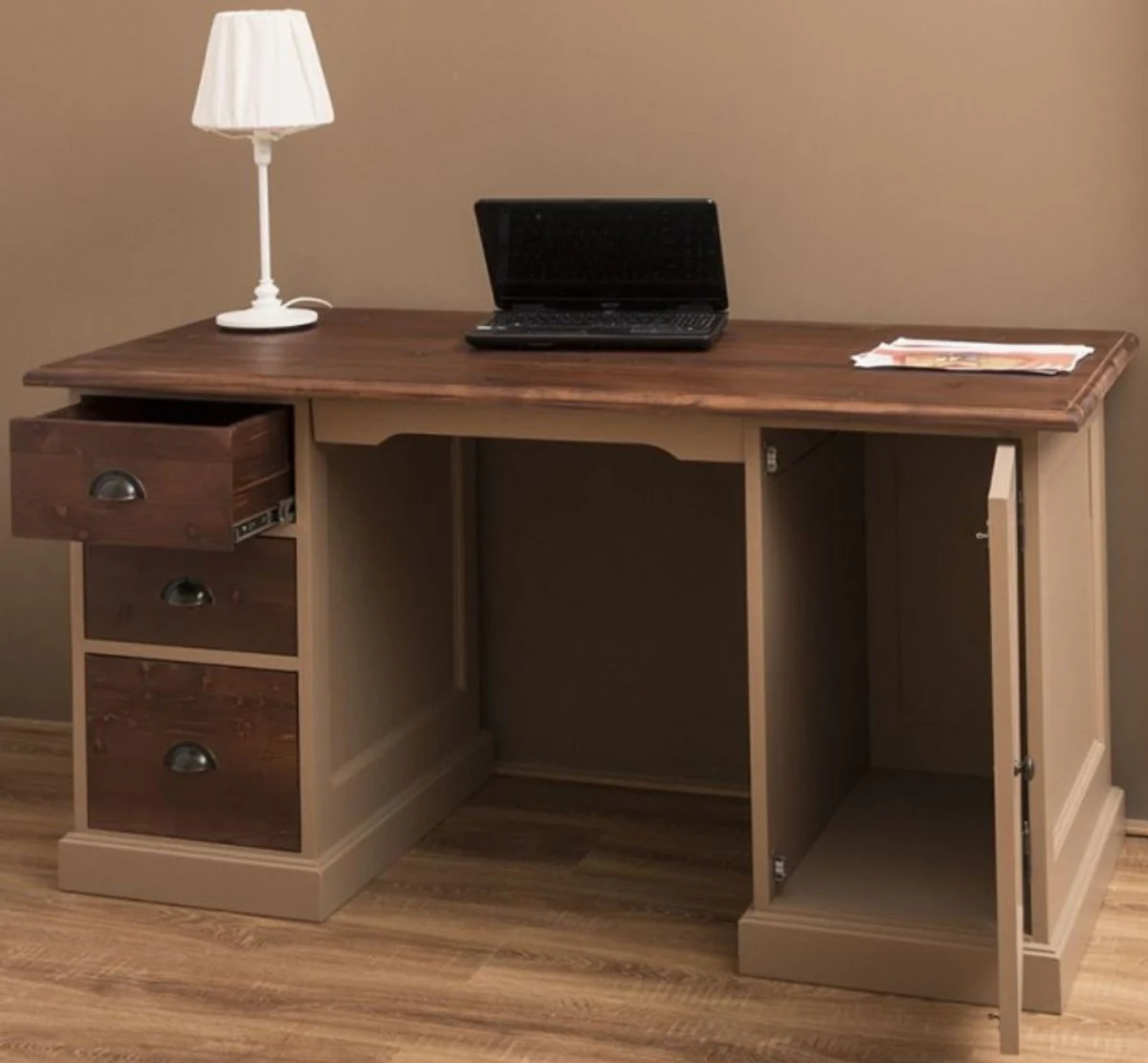 Casa Padrino escritorio de madera maciza de estilo campestre con puerta y 3 cajones beige / marr¨®n oscuro 152 x 70 x A. 78 cm - Muebles de Oficina en Estilo Campestre