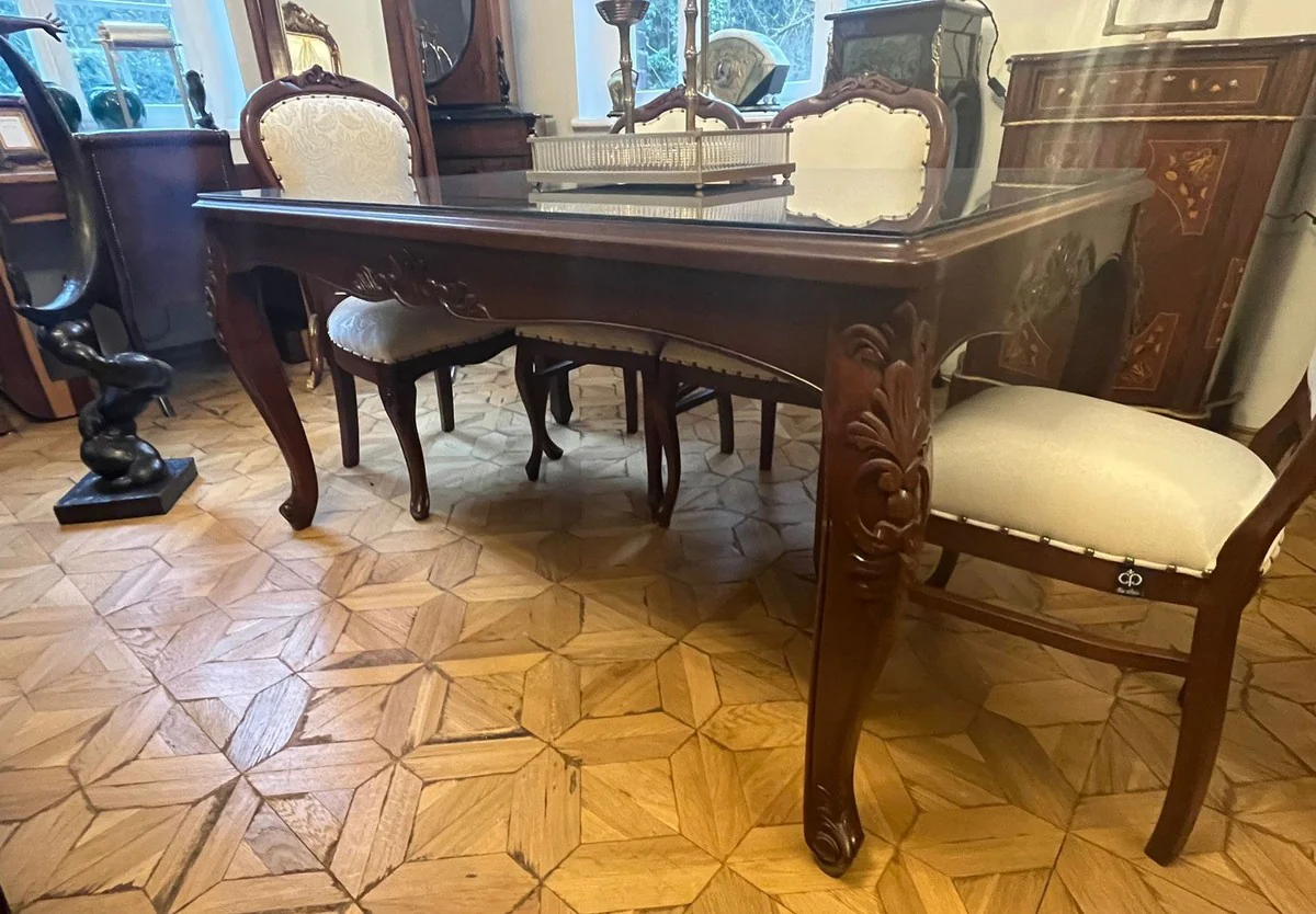 Casa Padrino mesa de comedor barroco de lujo con tapa de vidrio marr¨®n oscuro - Mesa de comedor de madera maciza hecha a mano - Muebles de comedor de lujo en estilo barroco - Muebles barrocos