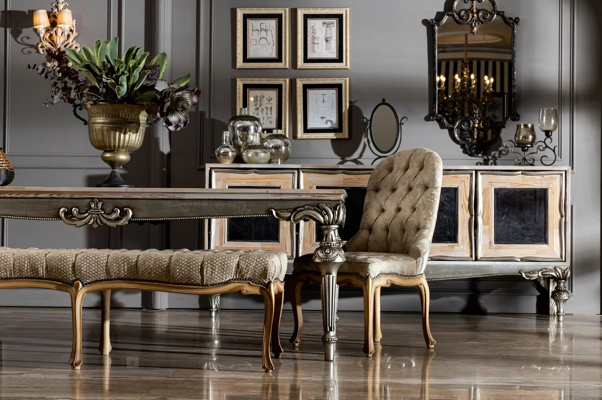 Casa Padrino mesa de comedor barroco de lujo plata / oro - Magn¨ªfica mesa de comedor de madera maciza en estilo barroco - Muebles de comedor barrocos