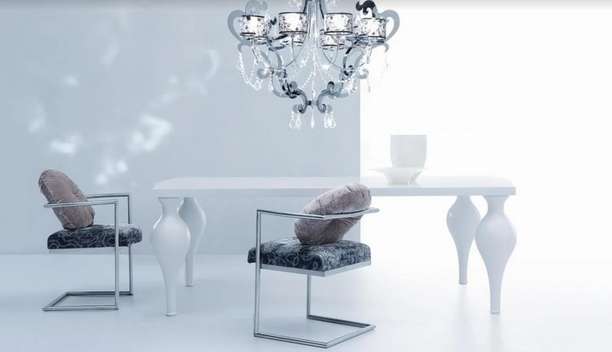 Casa Padrino mesa de comedor neocl¨¢sica blanco alto brillo 220 x 110 x A. 75,5 cm - Mesa de cocina de madera maciza - Muebles de comedor de estilo neocl¨¢sico