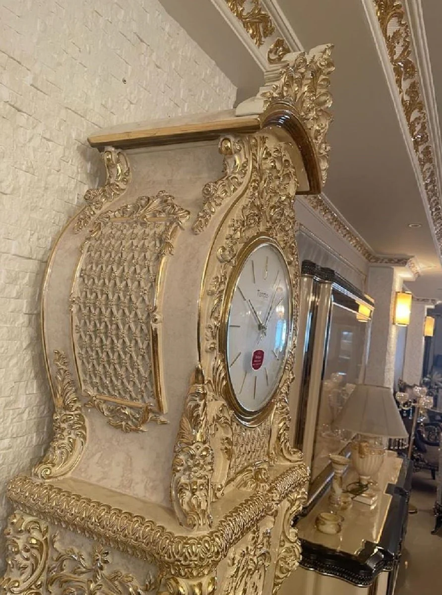 Casa Padrino reloj de abuelo barroco de lujo crema / marr¨®n / oro - Magn¨ªfico reloj de madera maciza de estilo barroco - Muebles de lujo de estilo barroco - Muebles barrocos - Interior barroco