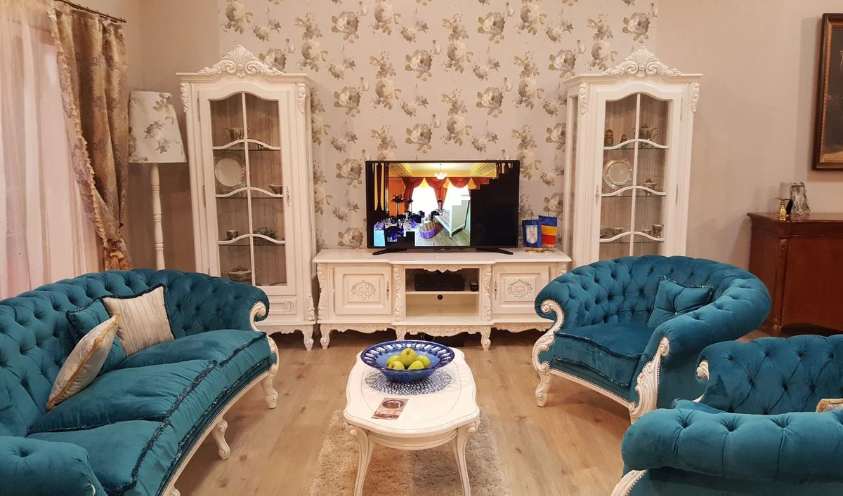 Casa Padrino sill¨®n barroco imperio azul claro patr¨®n / blanco / oro - Muebles de sala de estilo barroco - Muebles barrocos - Interior barroco